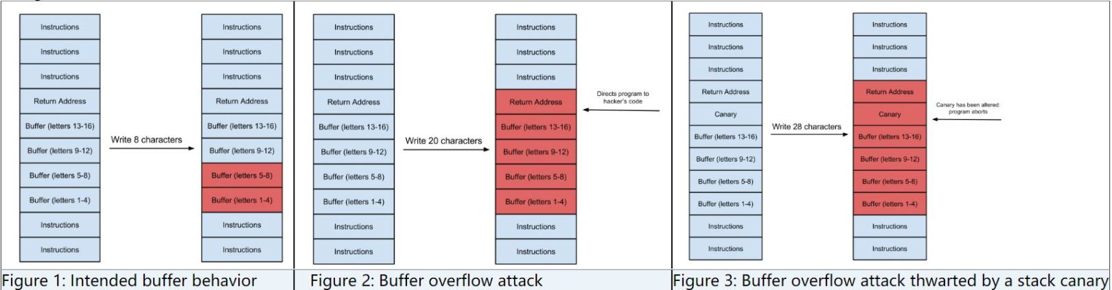 如果用户提供的信息长度超过16字节, 将会导致Buffer发生缓冲区溢出, 多出来的数据将会被写到Buffer紧邻的内存区域。如果栈帧中函数的返回地址被修改, 将会导致不可预见的异常。