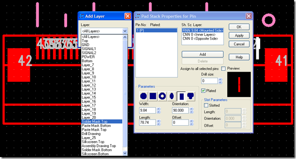 当时我们是怎么解决这个问题的呢?如图6所示,我们重新定义了每个焊盘的阻焊层,将阻焊盘的size设置得实际焊盘的size小一圈,这样top层焊盘的大小没有变,同时阻焊层的阻焊盘也不会连在一起