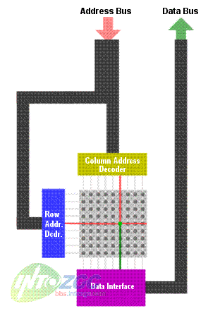 下面就是异步内存的读取过程的步骤,因为异步DRAM的运行并不需要同处理器同频,它的时序信号控制、寻址等操作基本上说是独立控制的,也就是由内存芯片本身所控制,所以在讨论起来比较简单,我们仅仅需要考虑DRAM本身的情况就可以了(这个系列的文章也是本着循序渐进的原则让大家更好的理解内存的工作原理的):