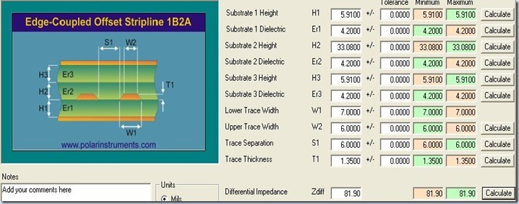 根据板厂的反馈,差分阻抗只能做到85欧姆,与计算结果接近(他们可以微调板层厚度,但不能调线)。但是改变线间距为12MIL时,计算得到的差分阻抗为92.97欧姆,再将线宽调为5MIL时,差分阻抗为98.99欧姆,基本符合设计要求。