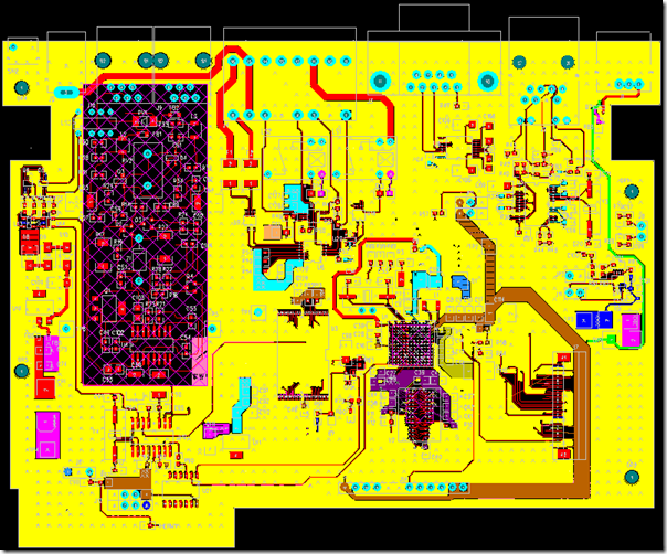 例如:图1中所示的板子中,我们必须非常小心的删除所有的碎铜,又不能破坏禁止区、贴铜区等形状,才会出现覆铜边框(如图2所示)
