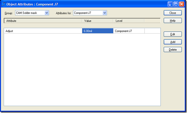 这样,其它器件的阻焊盘oversize仍然是10,但是J7这个器件的oversize是6。