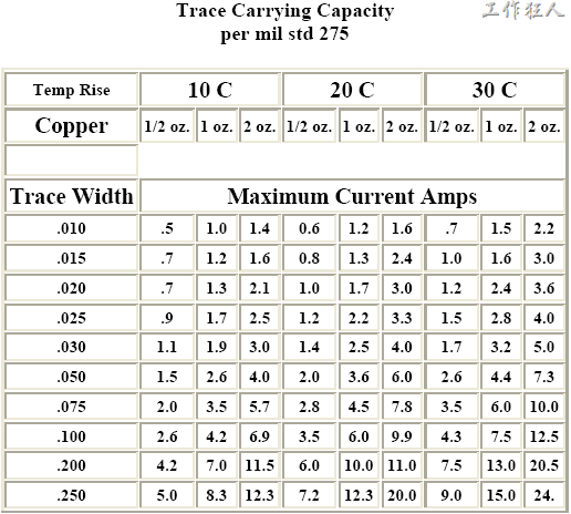 PCB的电流负载能力原则上取决于布线(trace)的铜泊断面的截面积与温升,但截面积又与线路的宽度及厚度正相关,只是电流负载能力是否跟铜线截面积成正比可能就不一定了?