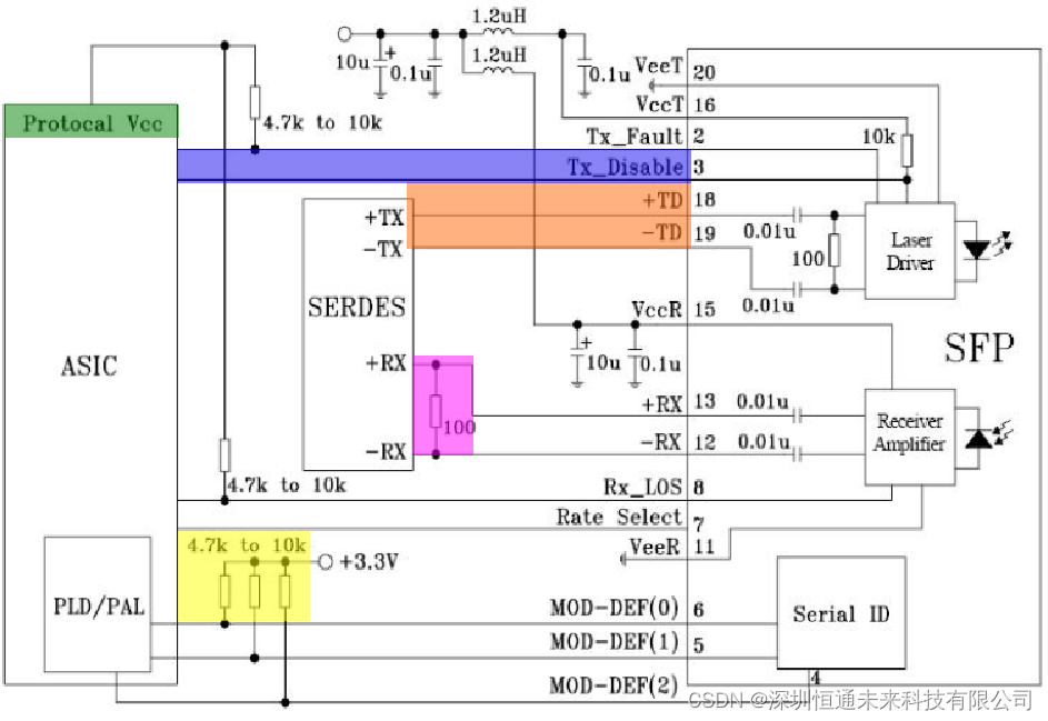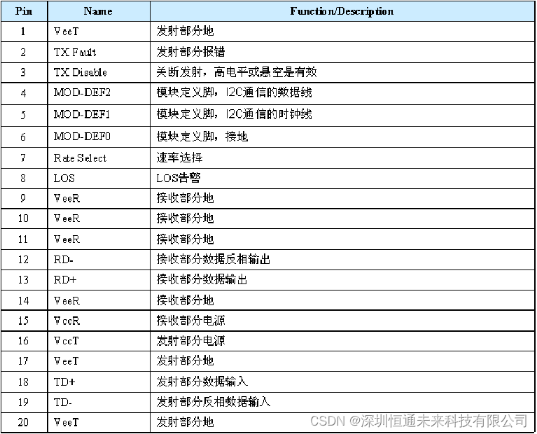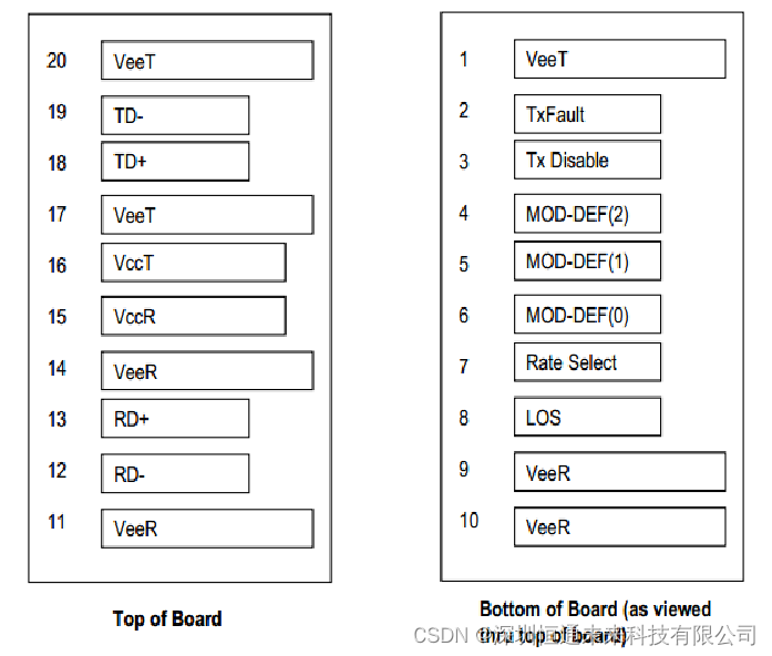 根据SFP MSA中规定,SFP光模块引脚定义如下:
