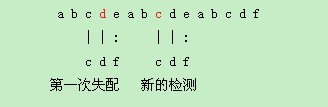 也就是说,中间的四个字符 d e a b 完全没有必要检测,直接跳转到下一个'c'开始的地方进行检测